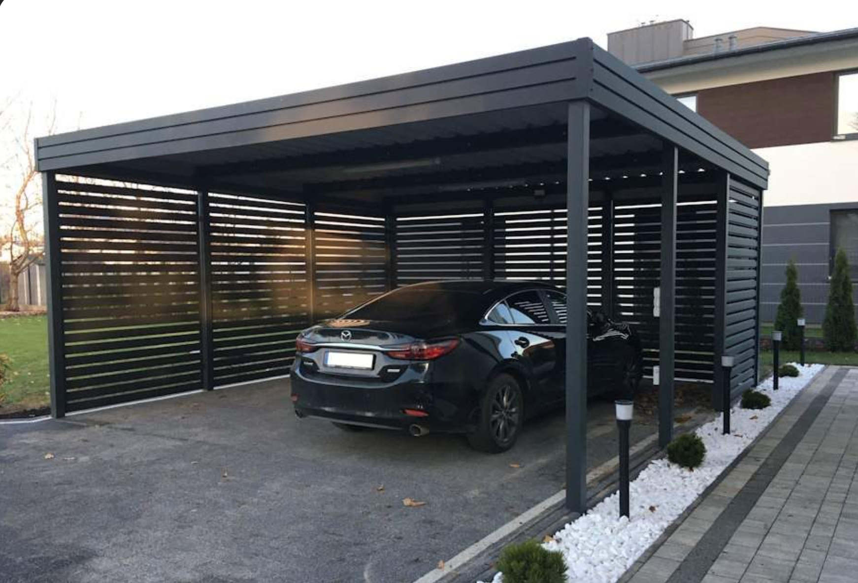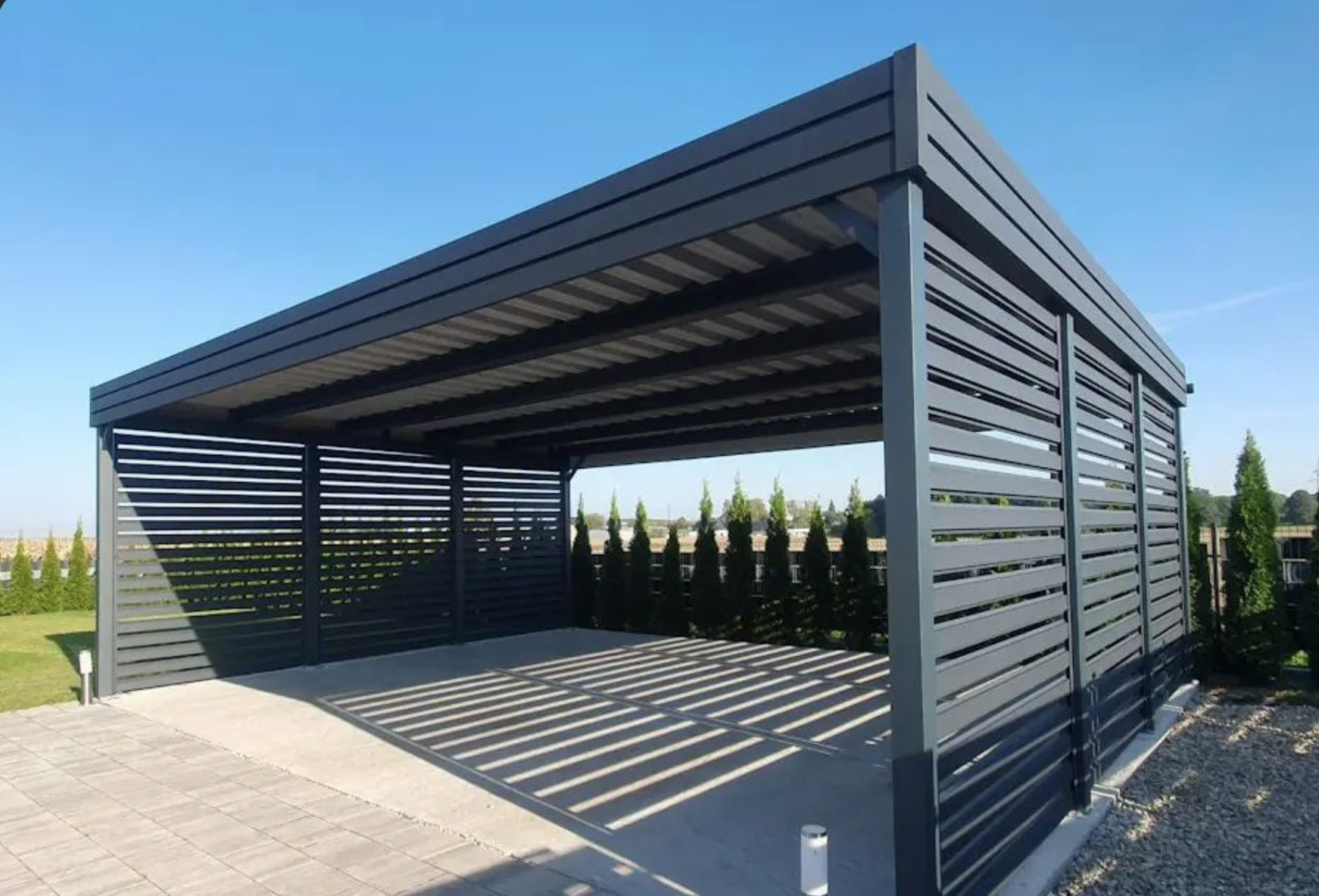 Металлические навесы для одного и двух автомобилей, для террас и хозяйственных построек. Собственный цех порошковой покраски — любой цвет RAL за 24 часа без пересылки.