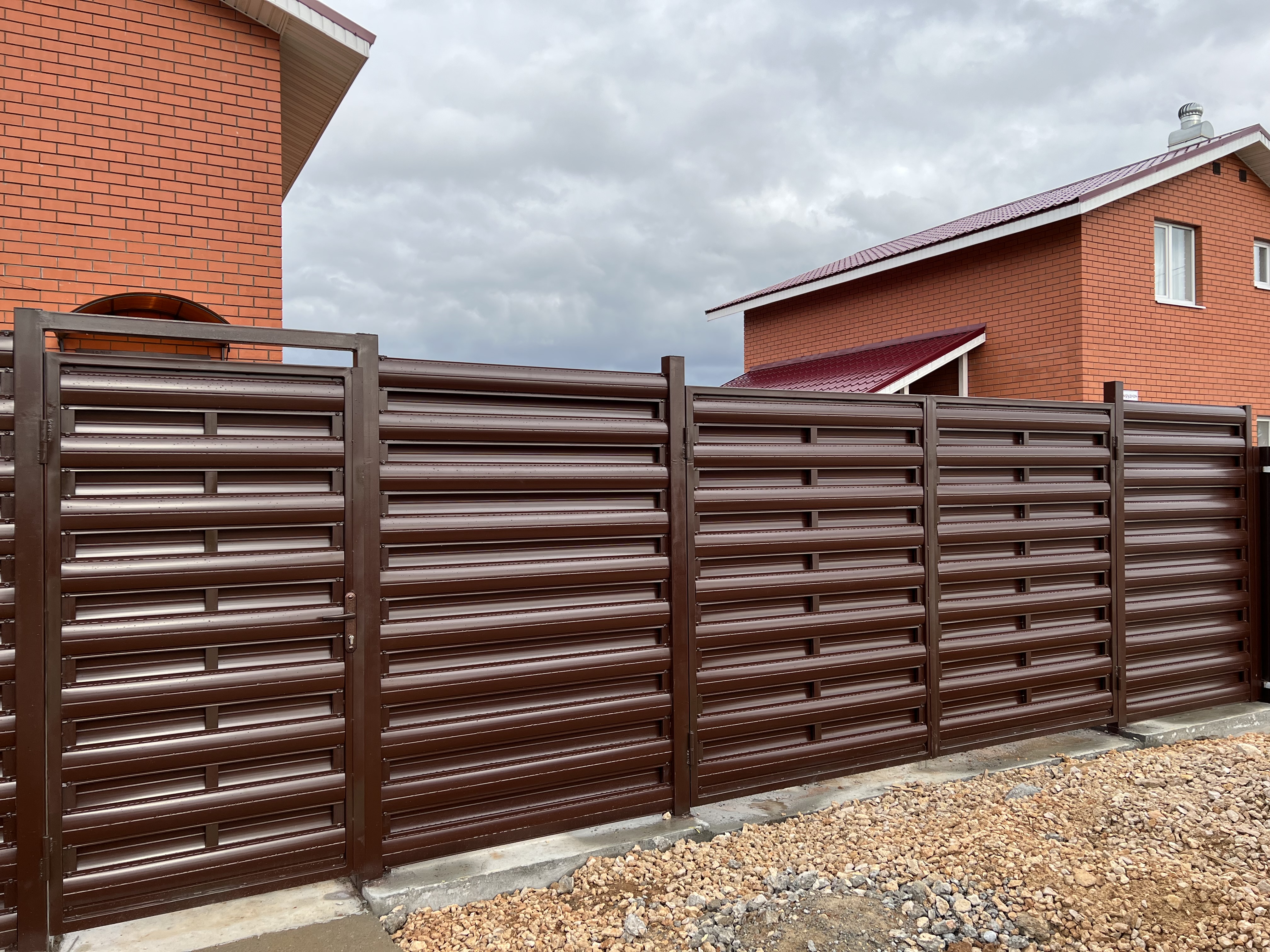 Евроштакетник — современная альтернатива профнастилу. Пропускает воздух и свет, устойчив к ветровой нагрузке, выглядит эстетично с обеих сторон. Красим в любой RAL в собственном цехе за 24 часа. Замер бесплатно, цена фиксирована в договоре.