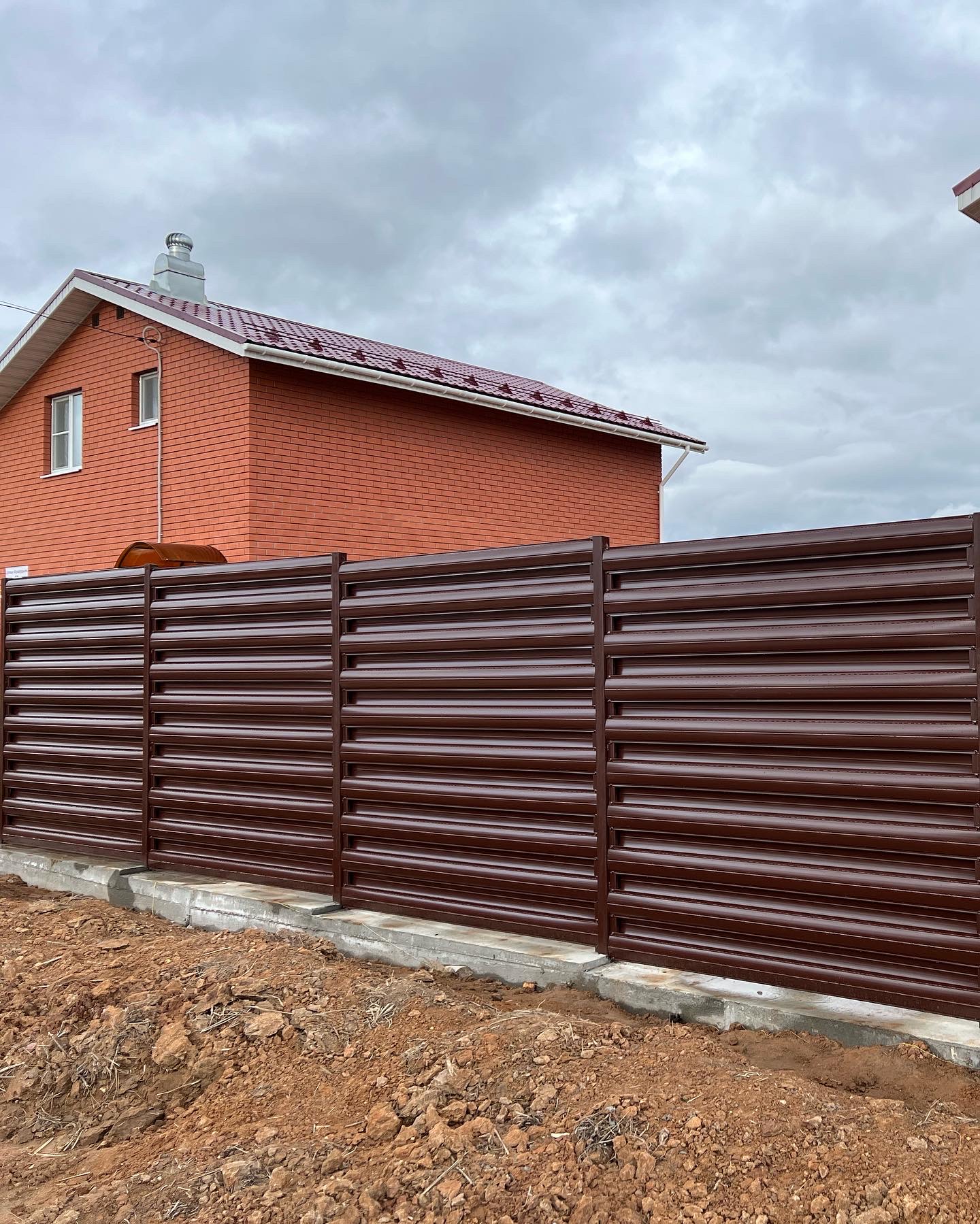 Забор из евроштакетника под ключ в НН стоит от 2 200 ₽/м односторонний, от 3 200 ₽/м двусторонний. Цена включает столбы, штакетник, покраску, бетонирование и монтаж.